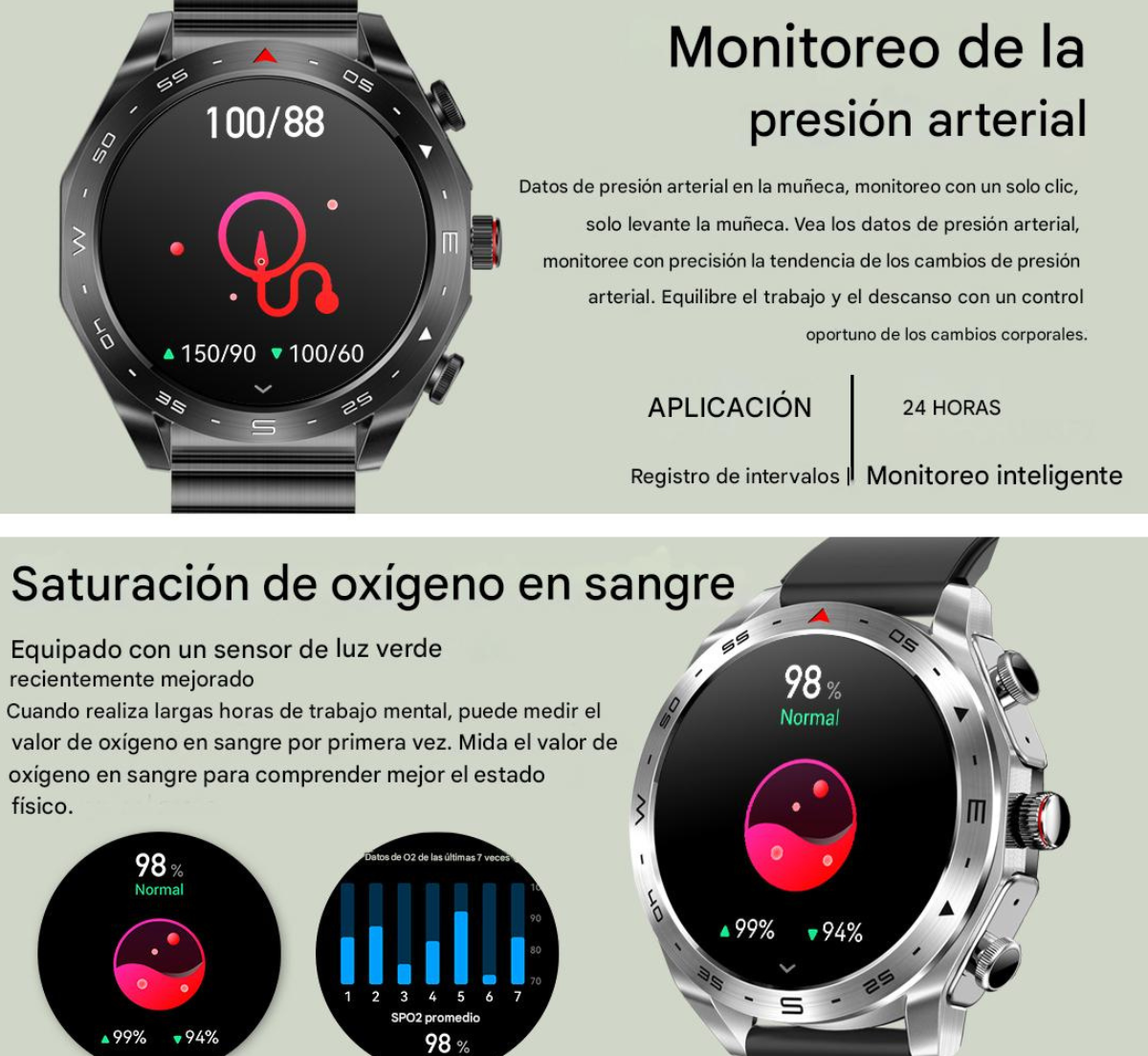 Cada detalle ha sido pensado para destacar. Un smartwatch robusto, elegante y funcional, creado para todo tipo de escenario, gracias a su pantalla de alta resistencia y bisel metálico para quienes valoran la precisión y el estilo en un solo movimiento.